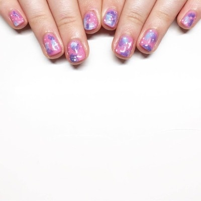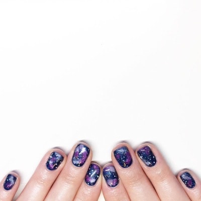 “I try not to do the same nails twice, so I have done the intergalactic mani in lots of variations of colours. I think the nails have been super popular as they are colourful and sparkly.