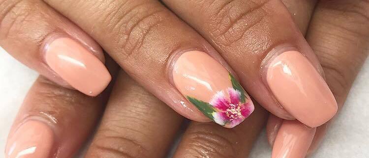 Danielle Powers, of Danielle Jade Beauty, reveals that tropical flower designs using the one stroke technique have been popular with her clients recently.