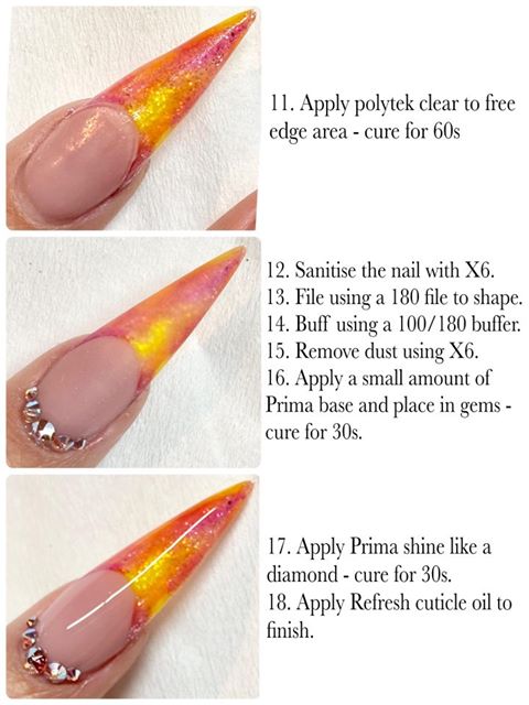“Due to life being very different at the moment, I wanted bold and bright nails that put a smile on my face and others. So, sparkly and sunny colours were essential. My daughter and I were playing with some swatching and she did something similar with one that I loved so I changed the colours for mine and added sparkle.