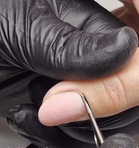 A dermatologist quoted: ‘Everything that is yellow, pink and green (and the bone) is ‘living’’, including the eponychium, which is the yellow tinted jelly strip at the bottom of the nail, the nail folds, the nail bed, located underneath the nail plate, and the matrix. The cuticle and hangnails and any area safe to be removed is displayed as white. This white tissue can display on-top of that yellow tinted jelly strip of the eponychium, which means you can remove the white non-living tissue but must not continue into the yellow tinted jelly strip or any areas that are pink. This is where using precision scissors can be more beneficial than nippers if you use them, as you can target smaller areas and never have your view blocked by the blades.