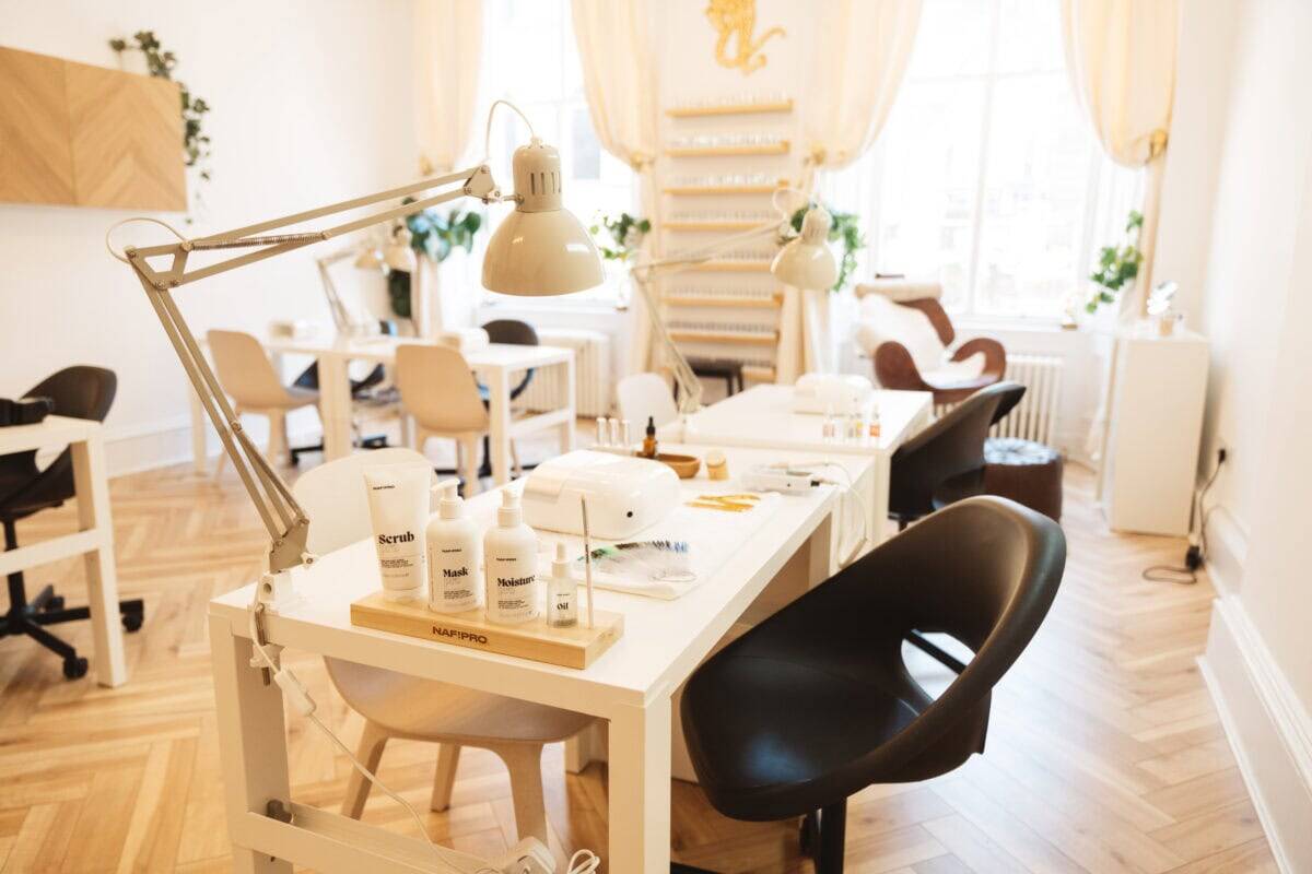 House of NAF! is located at the edge of the city centre, on a historical street, within a sandstone townhouse with original features. “The different parts of NAF! ran separately before we moved into the building,” Tammy continues. “Rebranding as a beauty, wellness and retail space made the business feel more cohesive. It’s been amazing and fun to bring our communities together and be a hub for beauty brands to connect with their Scottish audiences.”