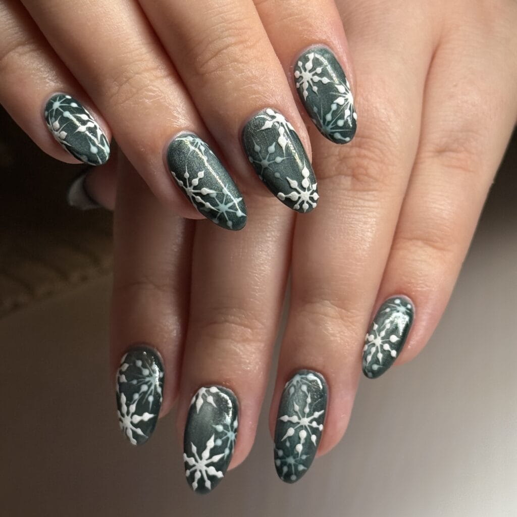 Victoria comments: “The nail enhancements by Kellie were executed to a very high standard. All nails were consistent in length and shape, and the surrounding skin appeared healthy and free from dust. The design perfectly captured the brief, Frosted Fingertips.