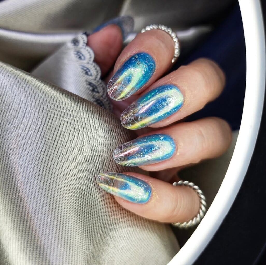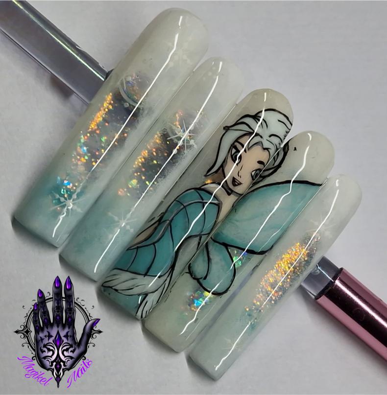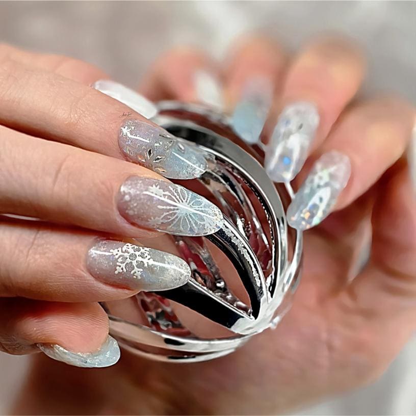 “Kellie’s use of encapsulation added beautiful depth and dimension, while the inclusion of crystals introduced an extra layer of interest. The image was well photographed, with a clear focus on the nails, allowing the attention to detail in this style to truly shine.”