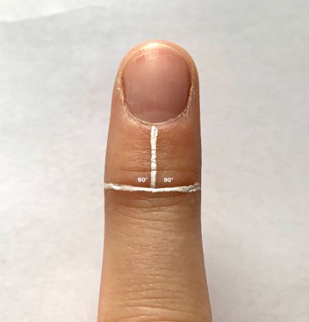 This line will be parallel with the centre line of the finger.