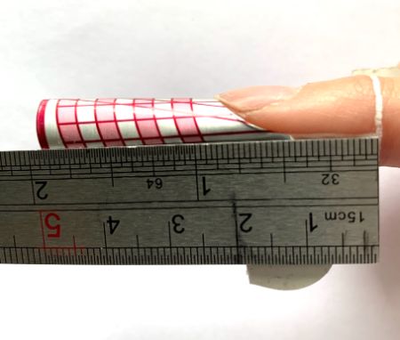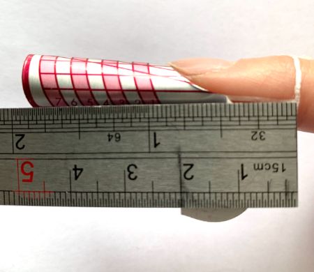 As we have covered, nails do not grow perfectly and may also be missing corners due to damage or trauma. Because of this, when we fit a form from the side view and check its positioning, we measure against the finger and not the natural nail side wall. Fingers are often crooked, so it is important to only use the end finger joint to measure this.