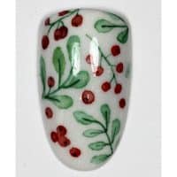 This festive pattern of red berries and green foliage comes courtesy of Lucie Hall. Effective yet straightforward to created, it can be easily tailored to your client’s taste via feature nails or full-on looks. Lucie Hall uses products available via www.lartnails.co.uk