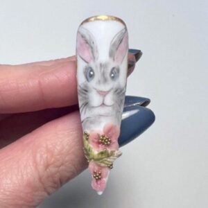 Alice Nali, Scratch Stars Nail Stylist of the Year 2023, shows how to create this floral springtime Easter bunny design. “Due to the time spent and unique hand-painted value, I would charge clients £10 extra for the bunny nail art on one nail on each hand, or up to £15 if they also wanted also…