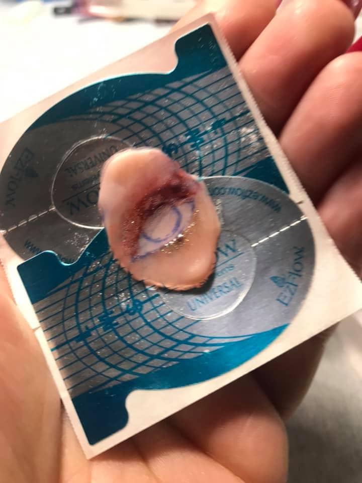 Use acrylic in flesh, nude tones to create the section of the face where the eye will be located. After the base is created, outline the location, size and shape of the eye.