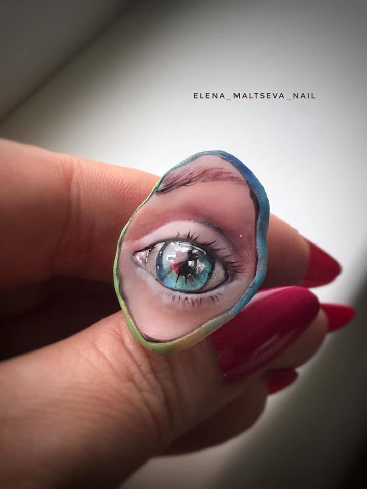 Mixed media nail tutorial by Elena Maltseva: eye nail art