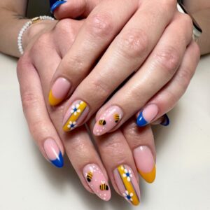 Salon System nail expert, Caroline Roberts, owner of Nail Fairy, has created a cute summer bee nail style using GELLUX…