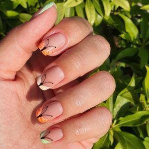 Salon System nail expert, Julie-Anne Lariviére, has created an abstract leaves design using her new GELLUX Free Spirit collaboration shades……