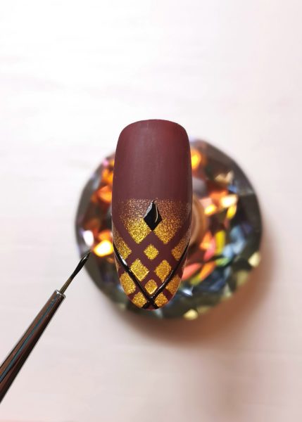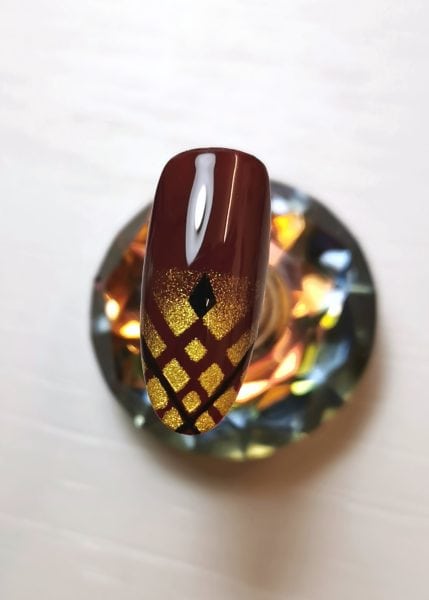 At this stage you can use either a matte or glossy top coat. I opted for a shiny top coat from Gelish,