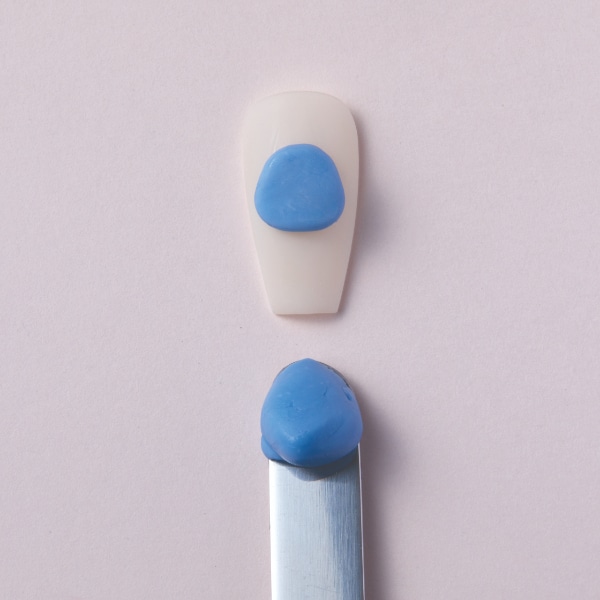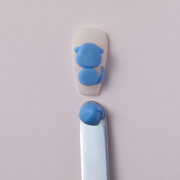 Using the same shade of blue and a spatula, create the body, tail and ears of the dragon and cure.