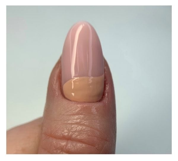 Prep the nails by filing to shape, pushing back the cuticle and buffing the nail plate. Cleanse nails with GELLUX Prep + Wipe and apply two coats of GELLUX Light Pink Builder Gel, curing for 60 seconds between each layer.