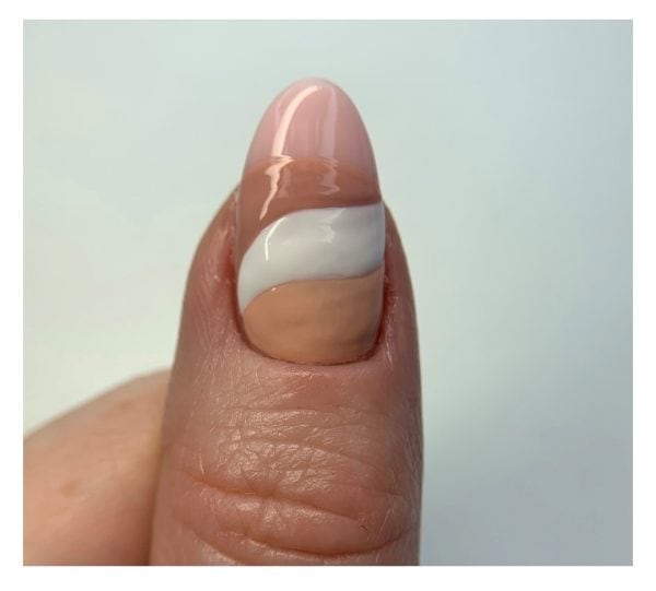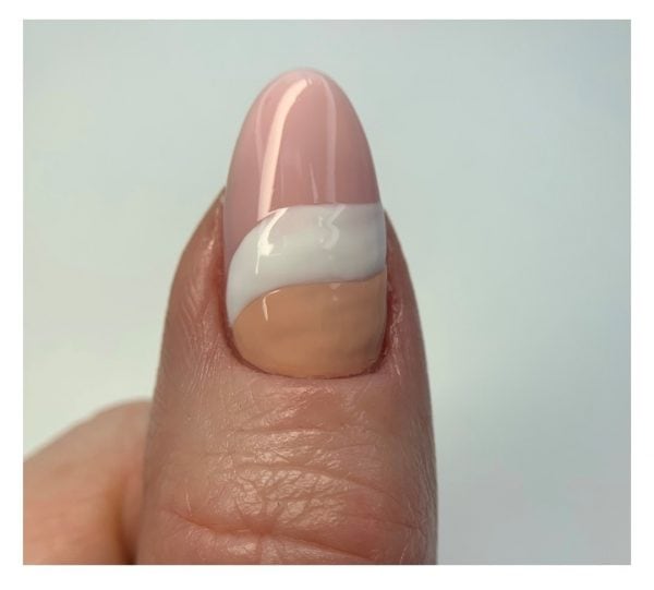 Using GELLUX Purely White, apply a ‘swoosh’ section in the middle of the nail, again using the fine liner brush.