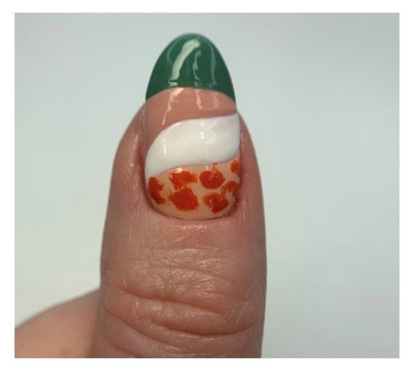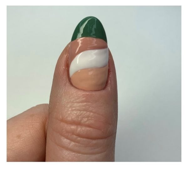 Using GELLUX For-Ever Green, colour in the tip of the nail, making sure to leave enough space for leaf nail art.