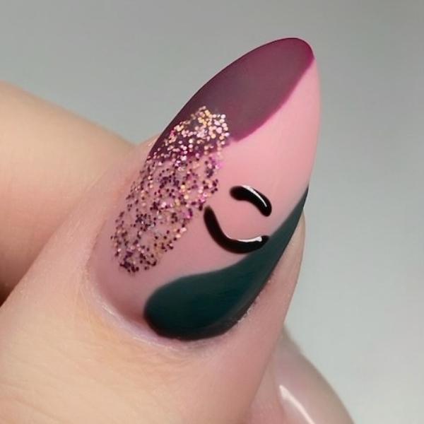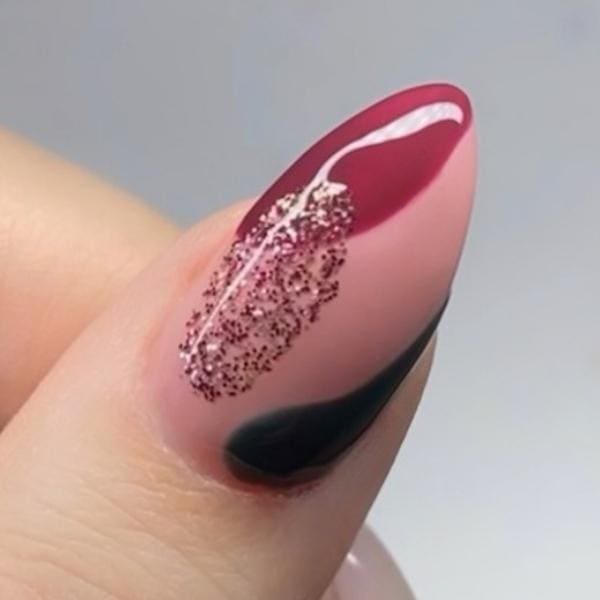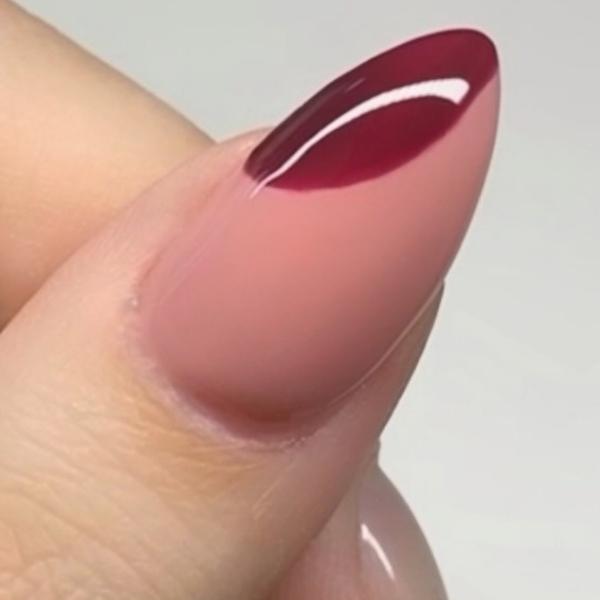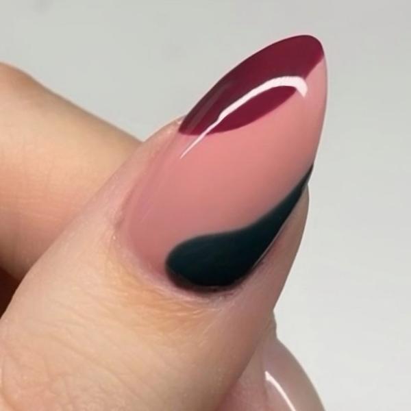 Take the shade Lipstick & Letters to create a half oval on one side of the nail and cure