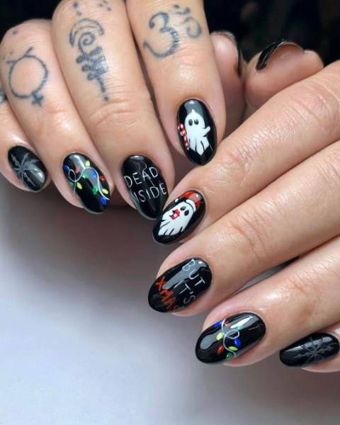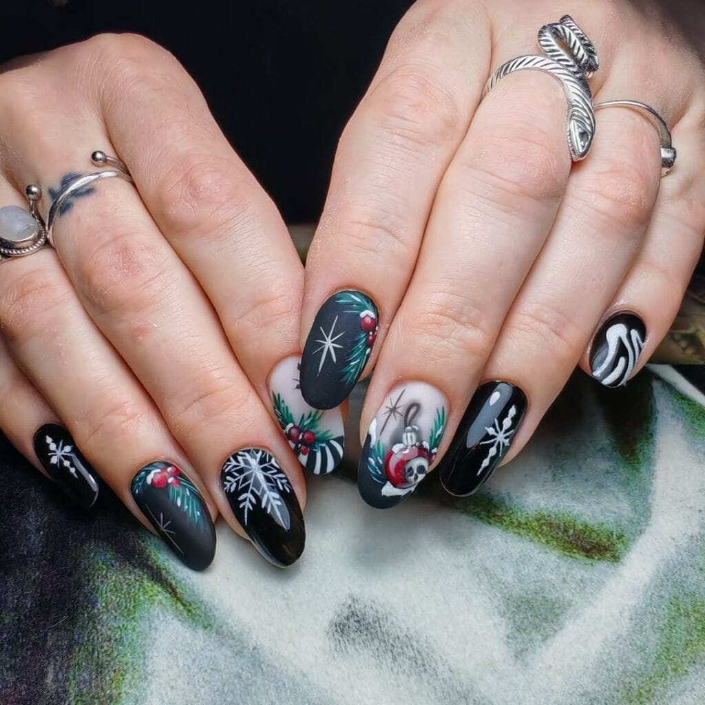 Looking for Christmas nail styles with an alternative twist? Explore the dark side of nail art with gothcore-inspired takes on festive designs.