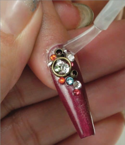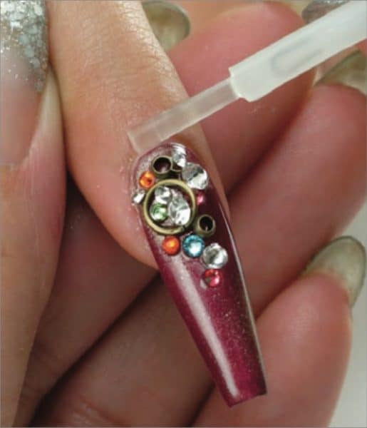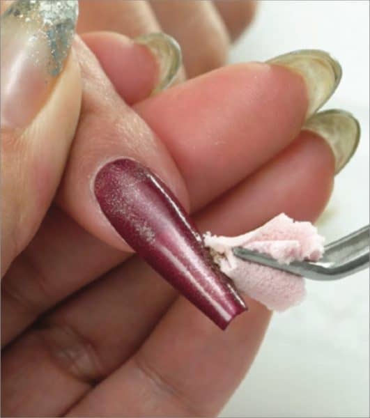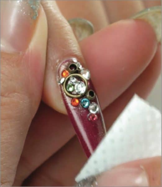 This nail design, by Artistic’s creative director, Alisha Rimando, can be achieved over nails that have been enhanced using the Putty or Rock Hard systems. Leave the nail rough from a 100-grit Perfect Buffer before following the below steps.