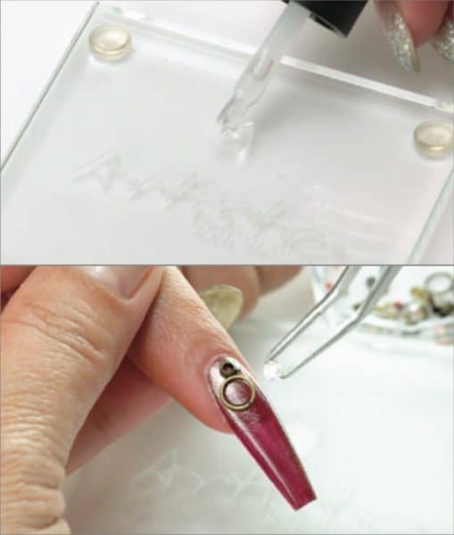 Dive into the world of steampunk with Artistic Nail Design’s 2018 wedding collection, A Steampunk Affair, and create this quirky design using the shades.