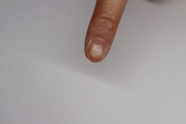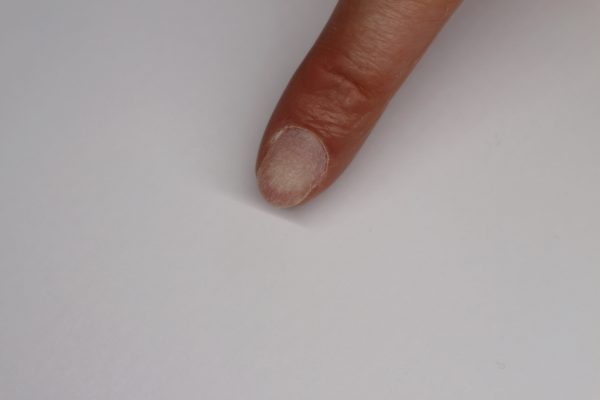 Prepare the natural nail ready for sculpting. Remove cuticle from the nail plate, file the free edge with a 240 grit file, and remove the surface shine with a 180 grit file.