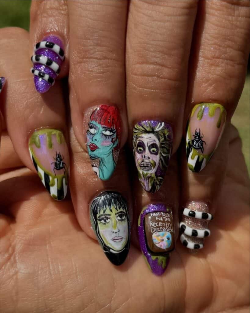Beetlejuice nail art designs: 20 Halloween-ready manicure ideas