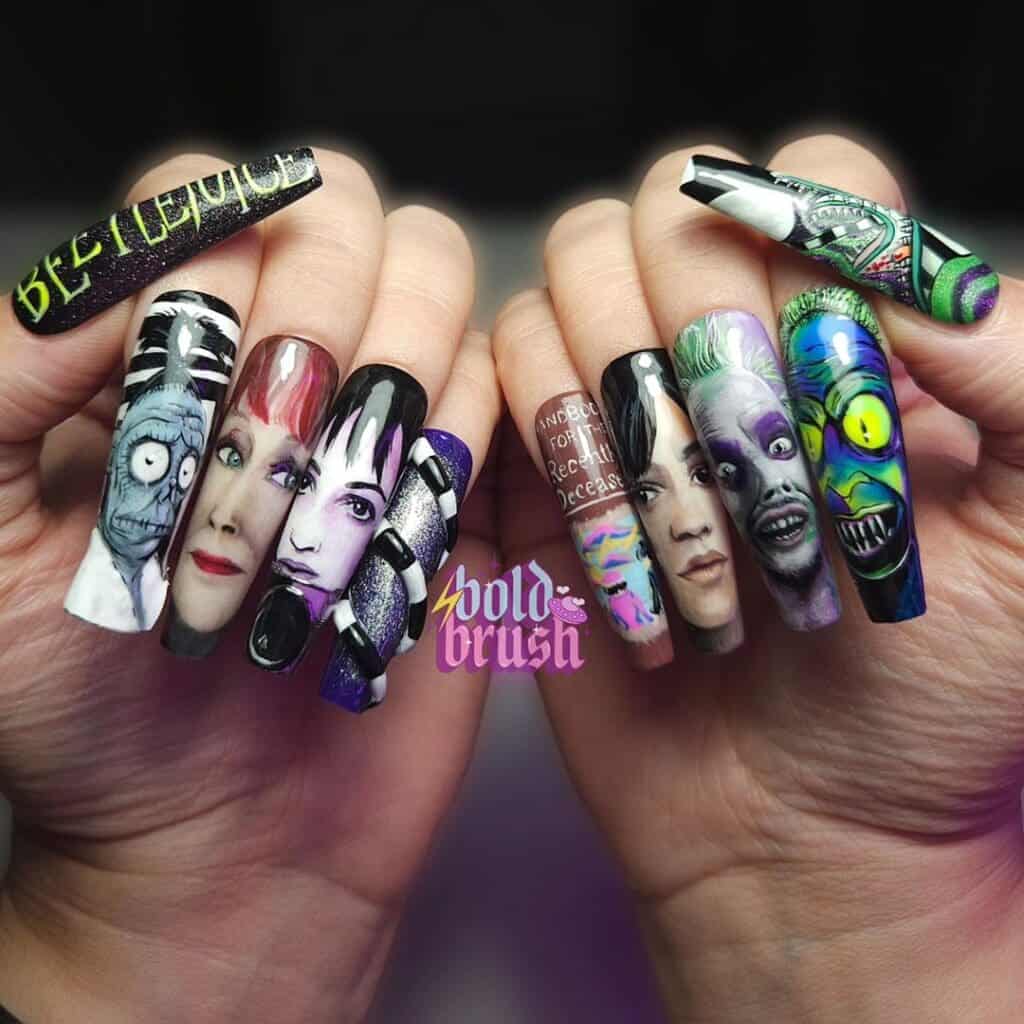 With the Beetlejuice sequel, Beetlejuice Beetlejuice, released this month and Halloween on the way, take inspiration from these incredible themed designs by nail artists.