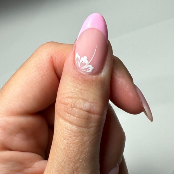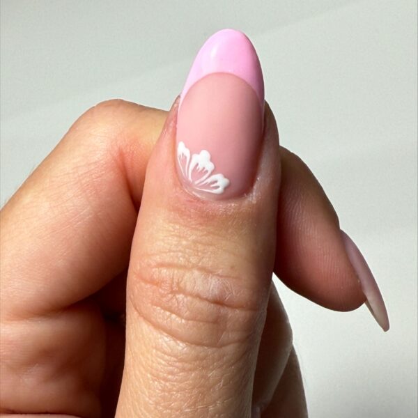 Use the white gel polish and a liner brush to paint a stem coming from the middle of the flower. Cure.