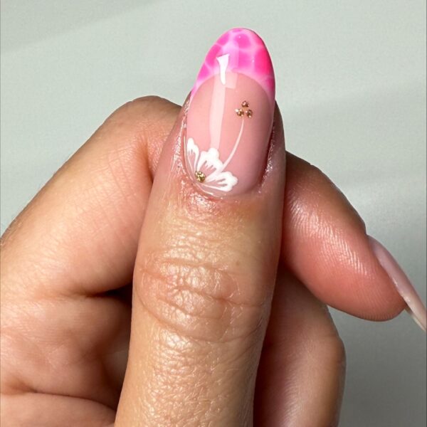 Summer nail art tutorial: blooming French tips & hibiscus flowers