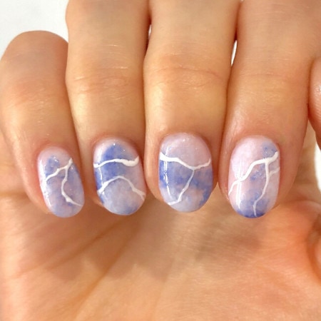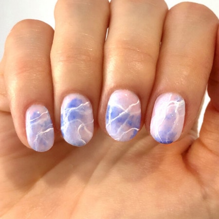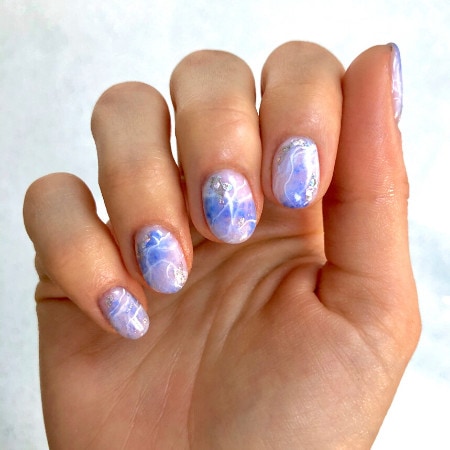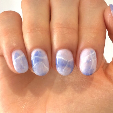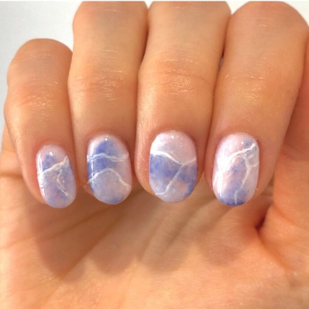 Salon System nail expert, Julie-Anne Larivière, has created a dreamy blue quartz nail design using the Gellux range of products.