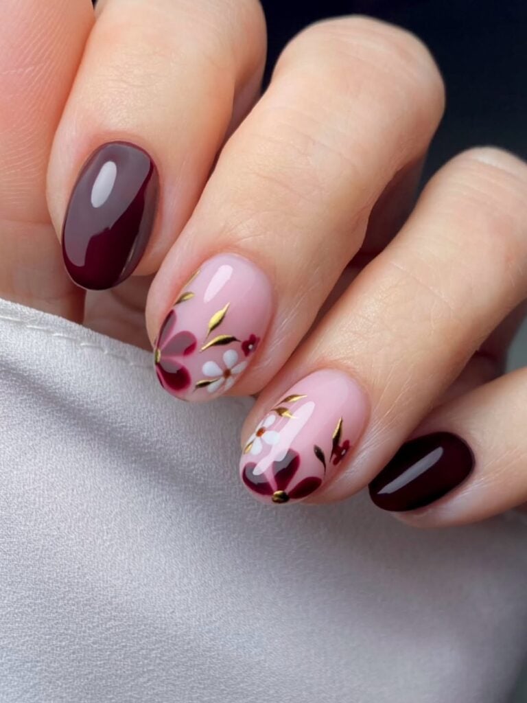 ‘Tis the season for burgundy manicures, showcasing the deep purple-red hue.