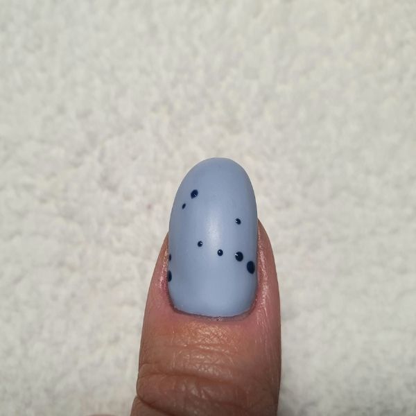 Using your fine detailing brush and GELLUX Purely White, apply a small dot to the nail. Before curing, pull outwards to create a starry effect, then cure.