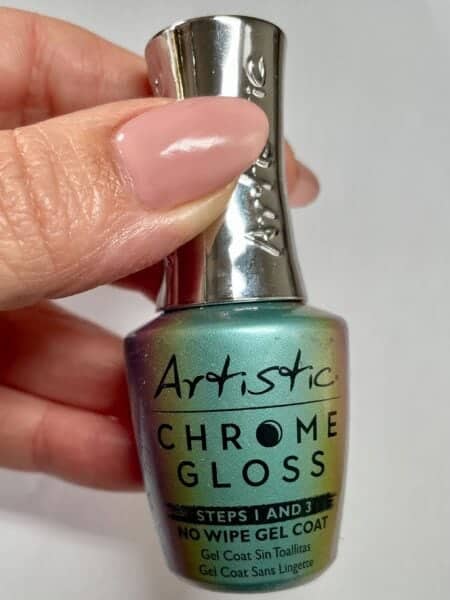 Apply a coat of Artistic Chrome Gloss and cure for 60 seconds.