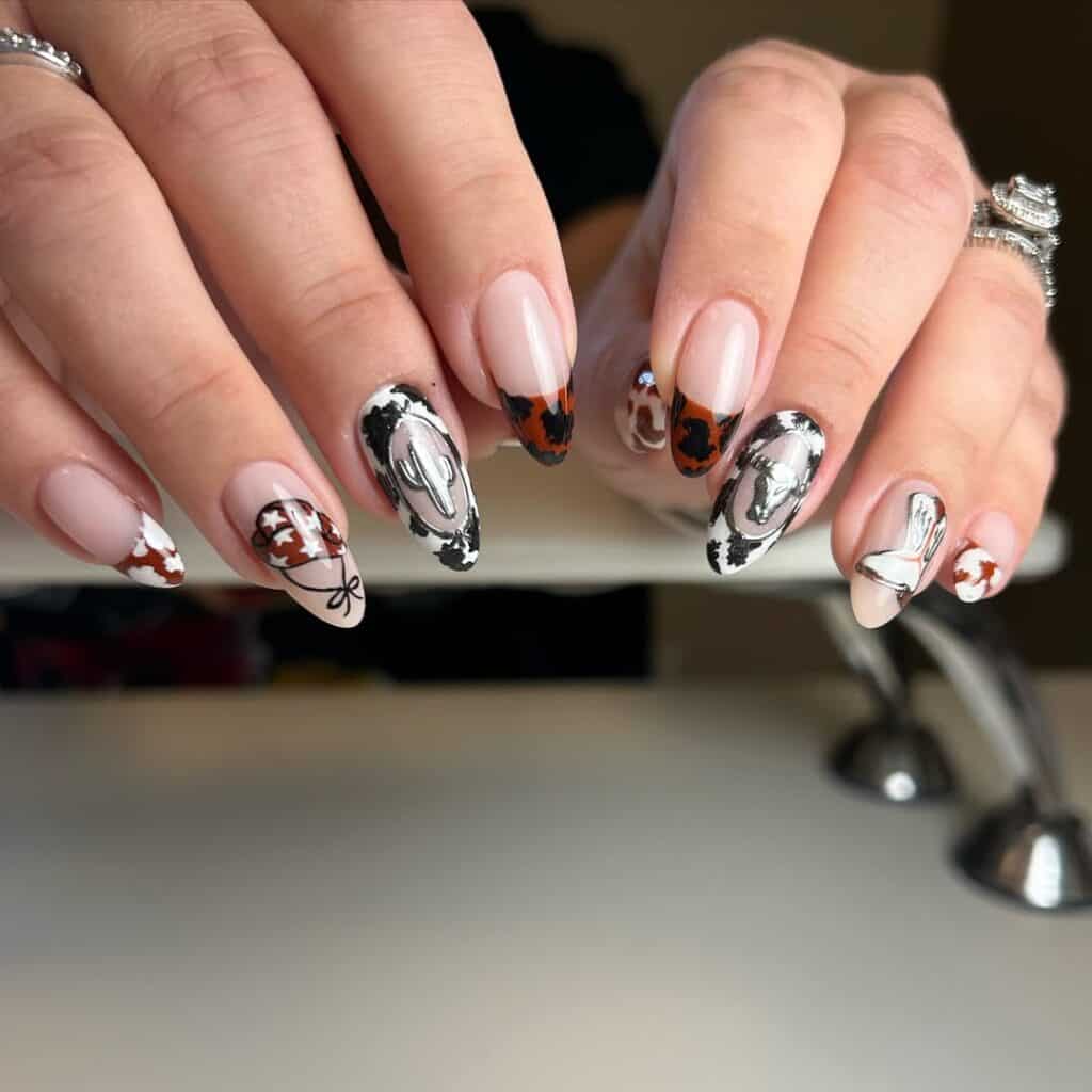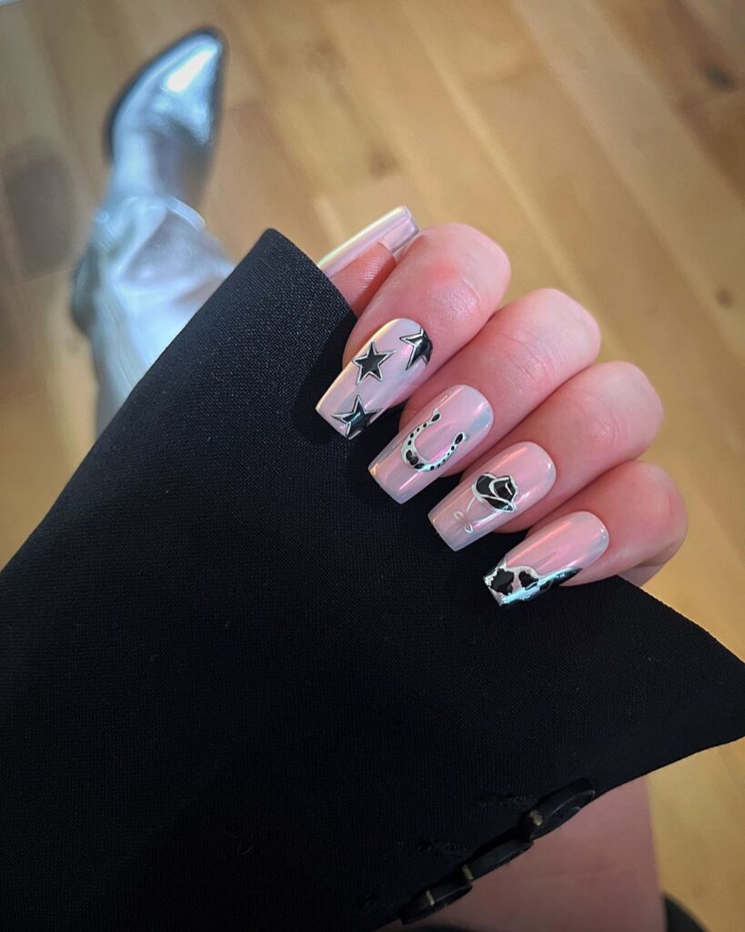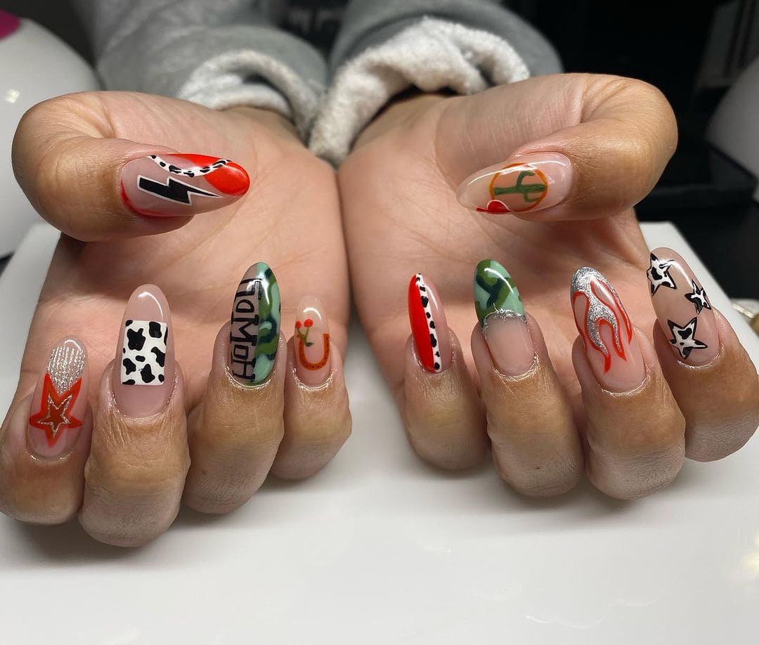 It’s no surprise that the trend is influencing nail art choices, from pops of cow print to intricate cowboy boots and hats. Check out our roundup of Western nail inspiration from pros on Instagram below…