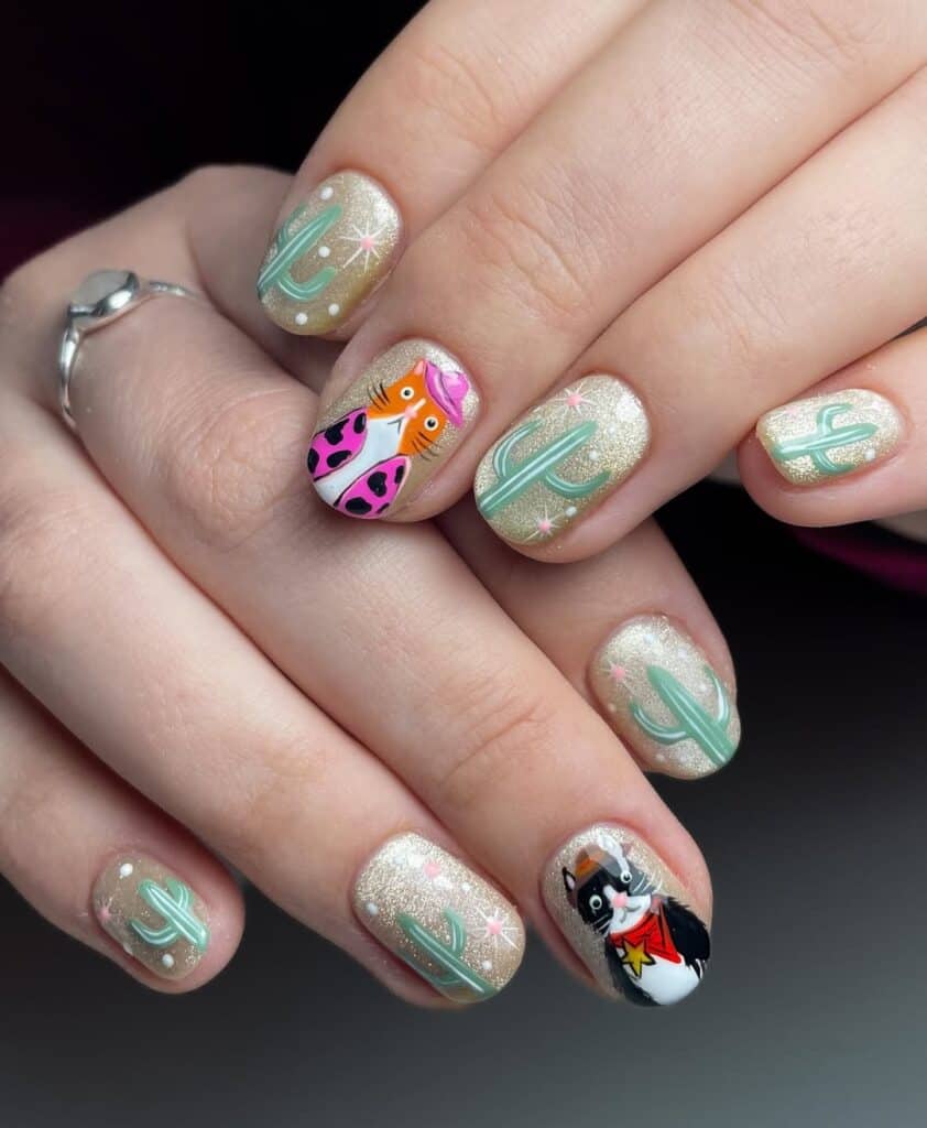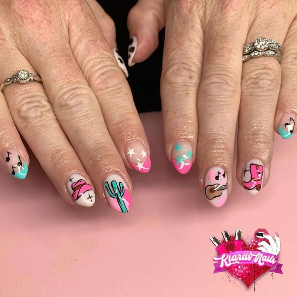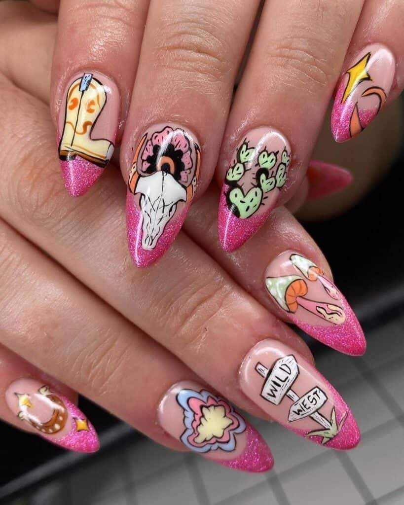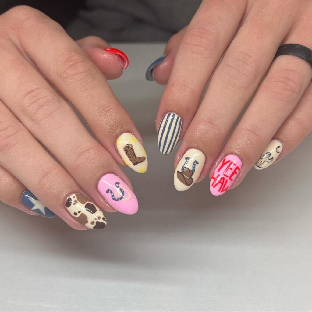It’s no surprise that the trend is influencing nail art choices, from pops of cow print to intricate cowboy boots and hats. Check out our roundup of Western nail inspiration from pros on Instagram below…