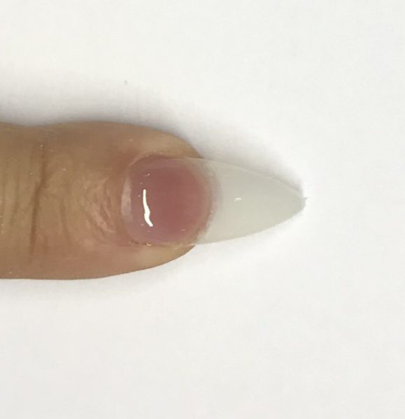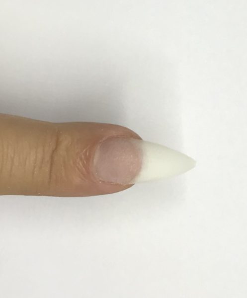 Apply a nail tip, cut to the desired length and blend. Apply ProBond to the natural nail.