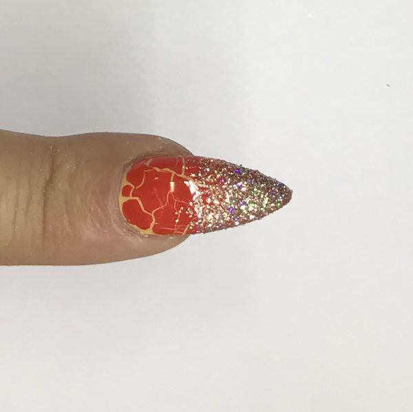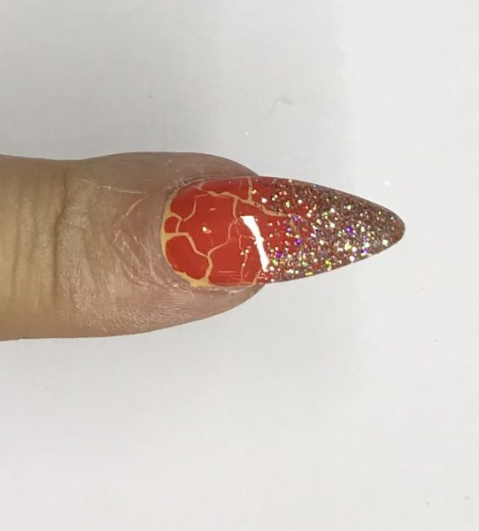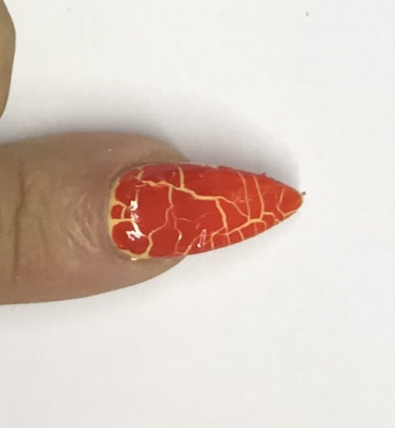 Apply one coat of the desired Crackle shade. Here, we used Gel-ato 62. Flash cure and allow to air dry for crackle to form.