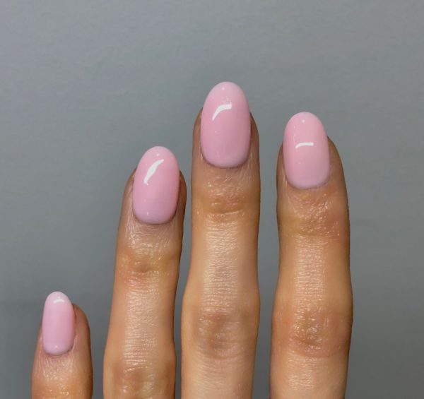 Prepare all the nails and wipe over with the Salon System Gellux Prep + Wipe. Apply the Gellux Fast Bond and let dry for 30 seconds. Then apply the Gellux Cover Pink Base Coat and cure for 30 seconds. Next, apply two layers of Salon System Gellux in Daisy Chain, curing between each layer.
