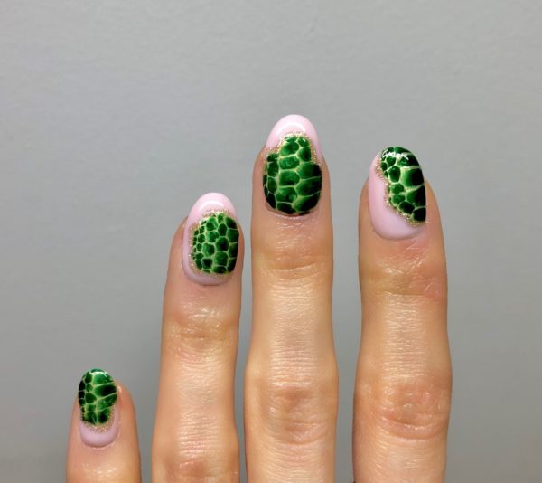 Repeat the last step for all nails, making sure to remember to leave space between the scales to bloom and cure one finger at a time.