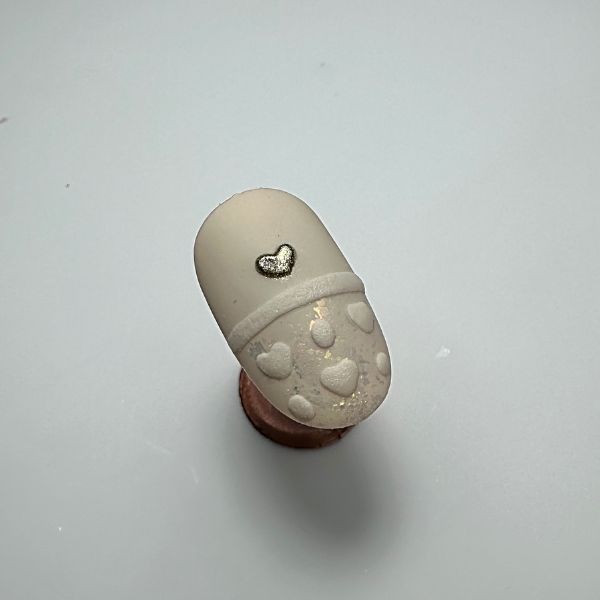 Paint a love heart onto the nail using a gold gel or acrylic paint, to create the bunny's nose.