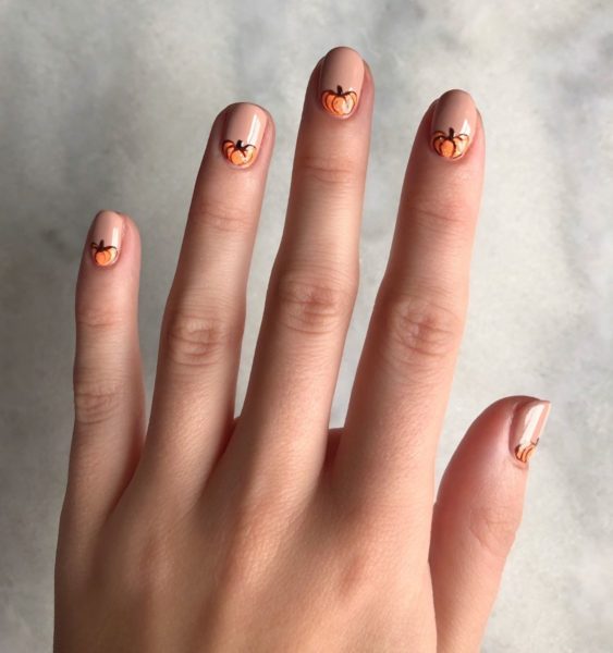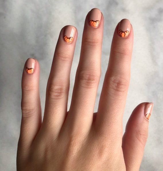 Recreate this super cute pumpkin design using Gellux shades by Salon System nail expert, Jaz Moger…