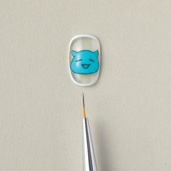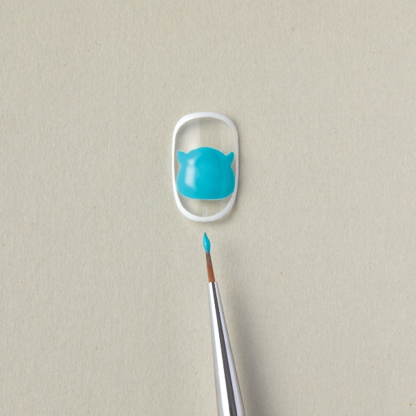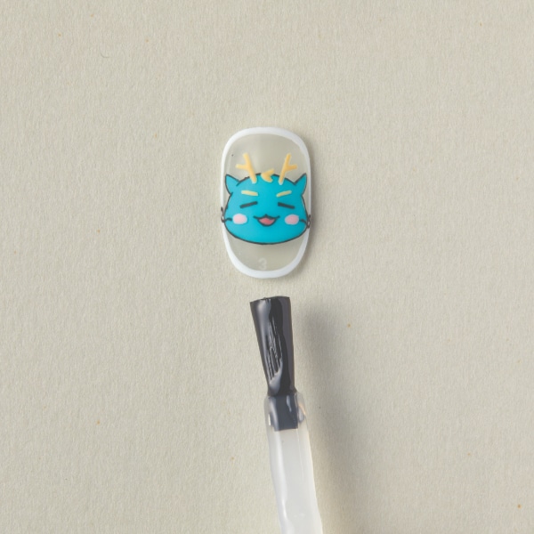 Add a glossy top coat to the cheek details and cure to finish the design.