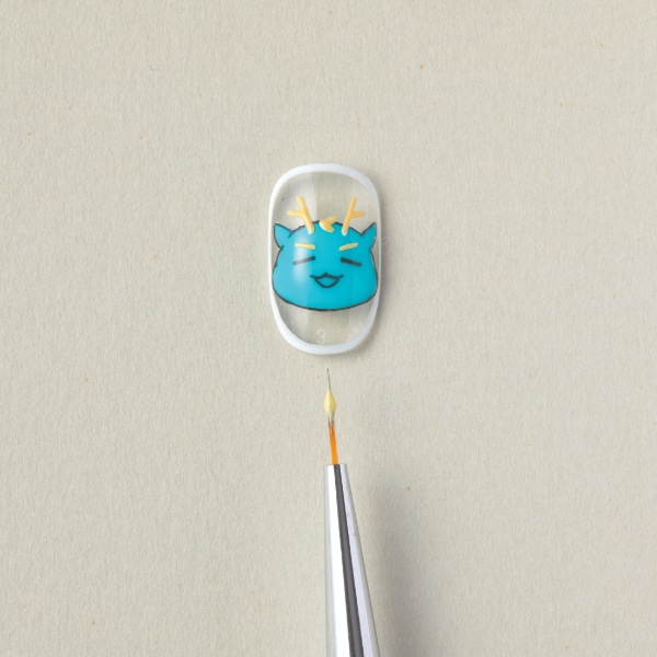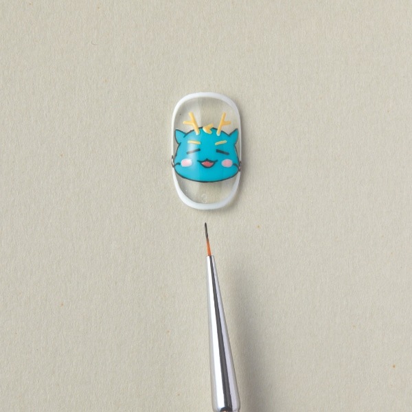 Draw horns, eyebrows and hair using a yellow gel colour and cure.