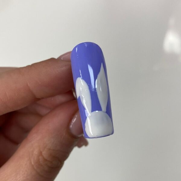 Using a detailer brush, paint a semi-circle onto the nail to create the bunny’s head shape. Cure. I used Unbelievabel Gel in White.