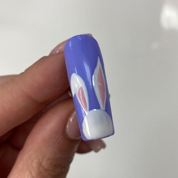 Using the same shade as step two, paint the outline of the bunny ears, fill them in then cure.