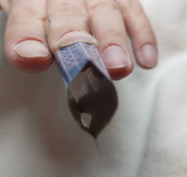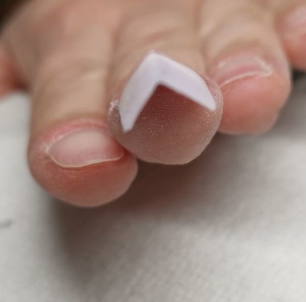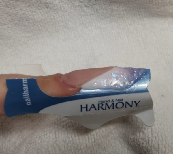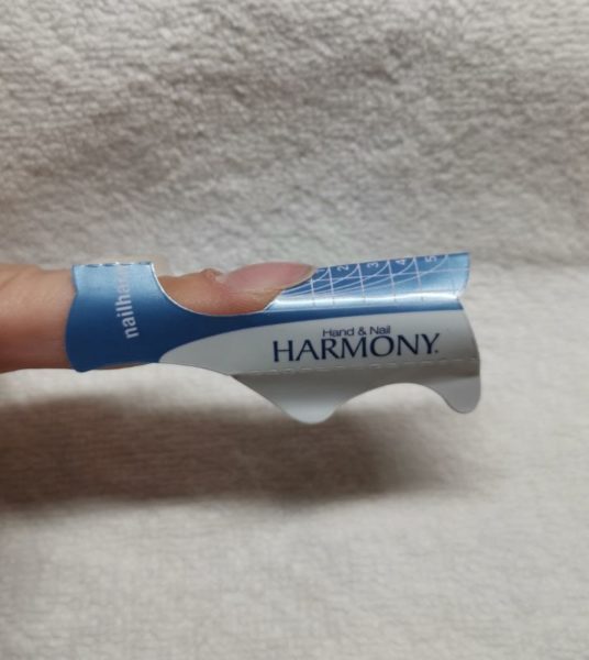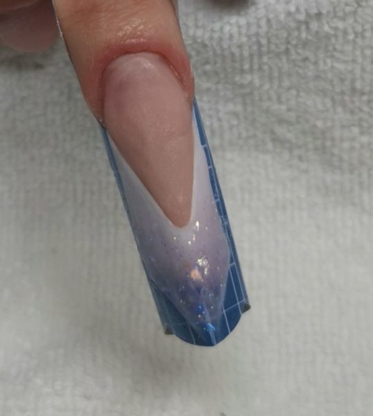 Apply the product evenly on the both sides of the form. The tip ends in the sharp point, as should the nail bed extension.