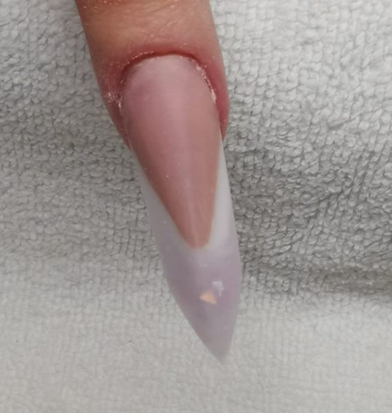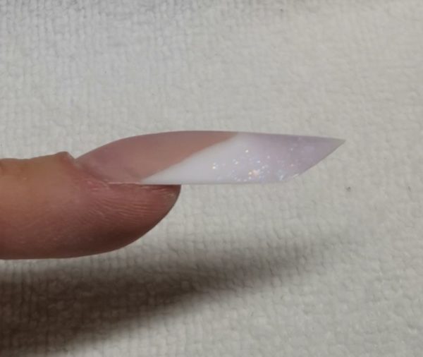 The free edge finished with a sharp tip. Finalise your nail and decorate with nail art and embellishments.