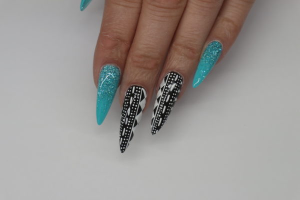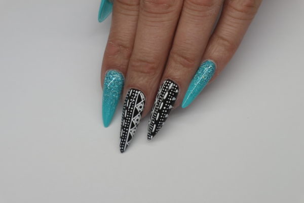 “For my Fiji-themed nails, I chose to take inspiration from the Fijian Masi, or tapa cloth,” reveals Jo Wickens. “Made from bark, the tapa is decorated using rubbing, stamping, stencilling or smoking to create geometric patterns with repeated motifs.”