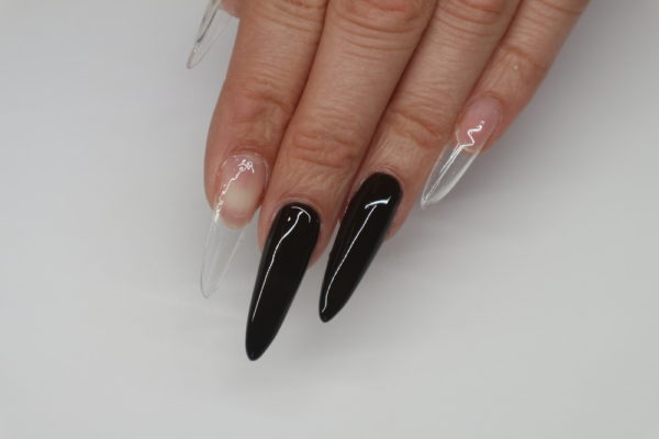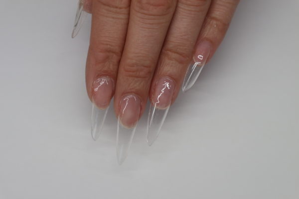 Prepare the natural nails, apply any bonders/primers, and then sculpt out the base layer or apply a tip followed by a thin layer of gel. Here I have used Light Elegance Extreme gel.