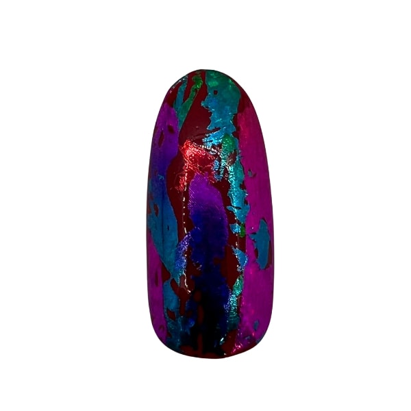 Dab Lecenté Rainbow Shimmer Nail Foil randomly over the inhibition layer, showing the different shades.